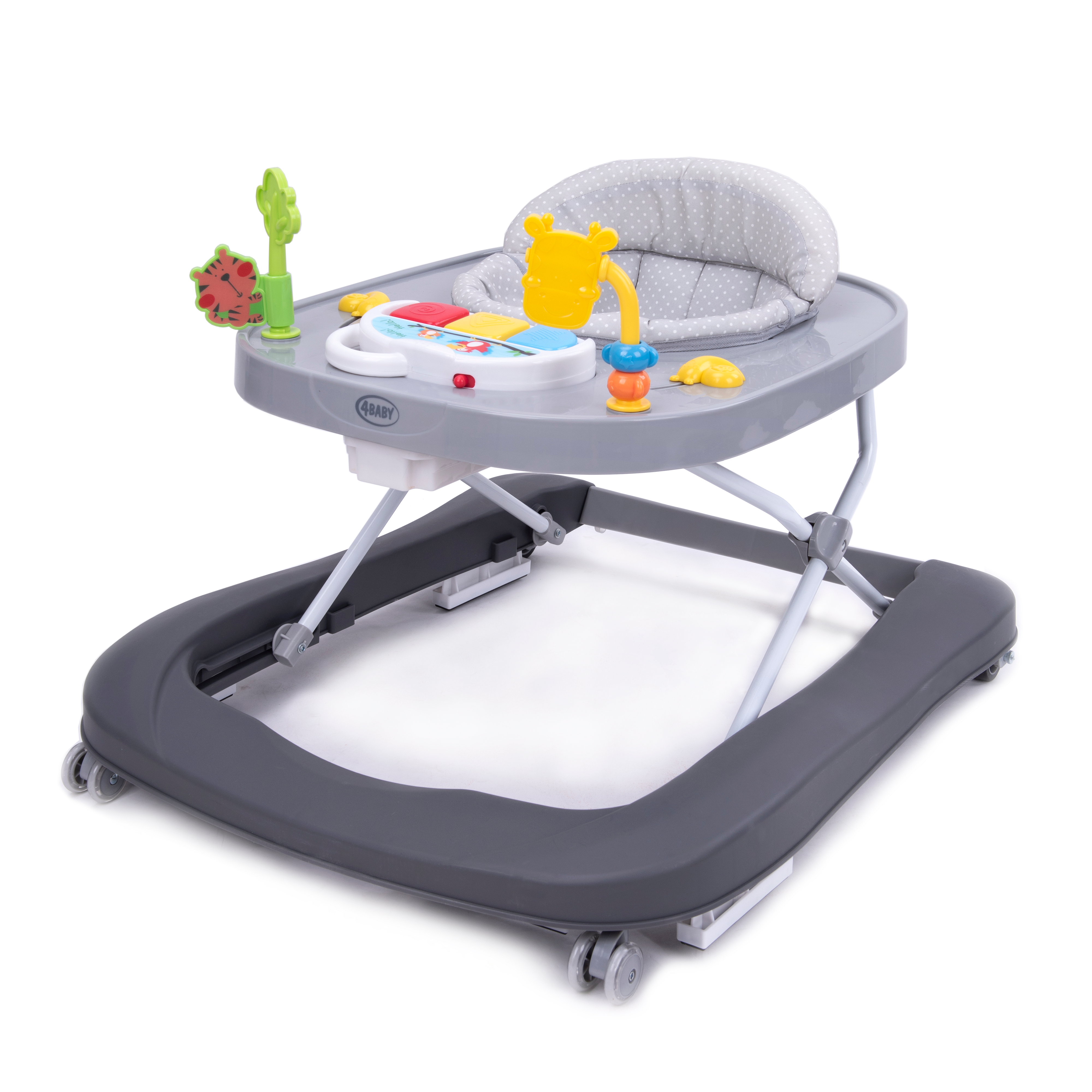 Suteikia stabilią atramą vaikui žengiant pirmuosius žingsnius, o išėmus galinį skersinį lengvai virsta stūmduku.