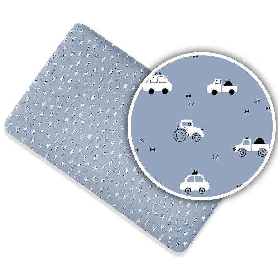 Ankras paklodė su guma 120x60 mašinytės mėlyna