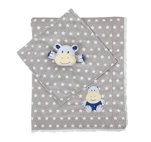 Dvisluoksnė antklodė yra pagaminta iš labai minkšto, šilto ir itin švelnaus audinio – pliušinio minkštumo „minky“ medžiagos. Viršutinis sluoksnis pasižymi ryškiomis spalvomis, dailiais raštais, siuvinėtas gyvūnų motyvais, tuo tarpu apatinis sluoksnis – tai minkštas audinys su pūkeliu, imituojantis avies vilną. Antklodė gali puikiai papildyti vaiko kambario interjerą, tapti dailiu vežimėlio priedu. Antklodė komplektuojama su mielu minkštu žaislu, kuris gali tapti pirmuoju vaiko draugu, prie kurio jis galės švelniai prisiglausti prieš miegą arba vaikščiojant lauke.