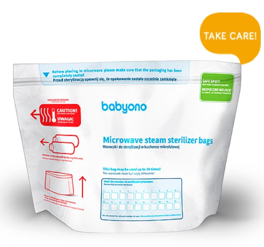 Babyono steriliseerimiskotid mikrouunis kasutamiseks, 5 tk