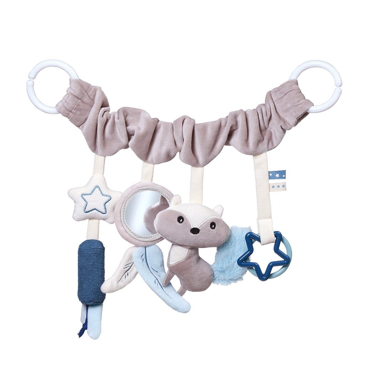 Praktiškas ir universalus laikiklis leidžia pakabinti žaislą ant vežimėlio, automobilinės kėdutės ar lovytės.