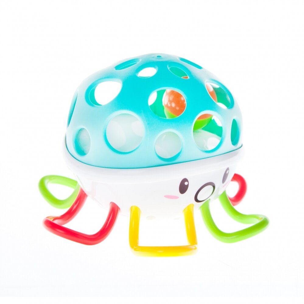 Kirjeldus Minkštas barškutis-aštuonkojis paskatins jūsų mažylį energingai žaisti.