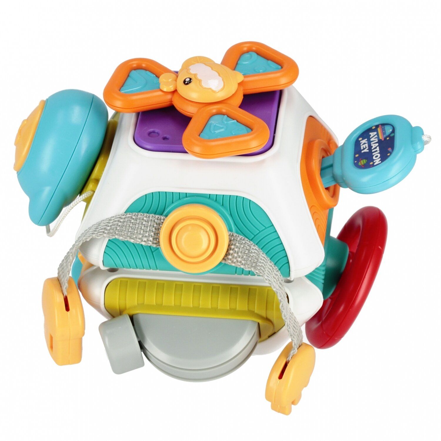 • Veiklos: Kiekviena kubo pusė siūlo įvairias veiklas, tokias kaip: rakto įdėjimas į spyną, saugos diržo užsegimas, virvutės traukimas, klaviatūros spaudimas; „šviesos“ jungiklio spaudimas; skambučio sukimas, palaikant vaiko vystymąsi.