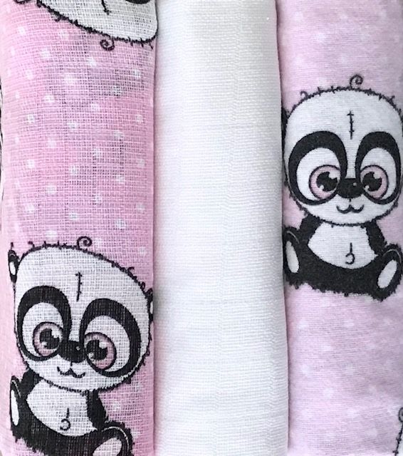 Kirjeldus Puuvillaste mähkmete komplekt, 3 tükki, "Panda girl"