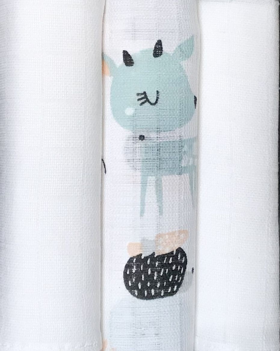 3 x puuvillased marlilapid: mõõdud: 3 tk - 70x80 cm
