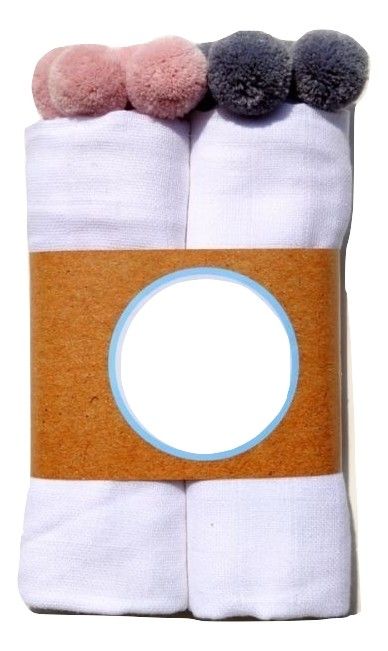 Kirjeldus Puuvillaste mähkmete komplekt, 2 tükki, "Lux pompom" pom-pomidega (hall+roosa)