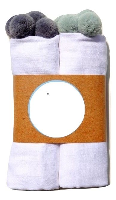 Kirjeldus Puuvillaste mähkmete komplekt, 2 tükki, "Lux pompom" pom-pomidega (hall+piparmünt)