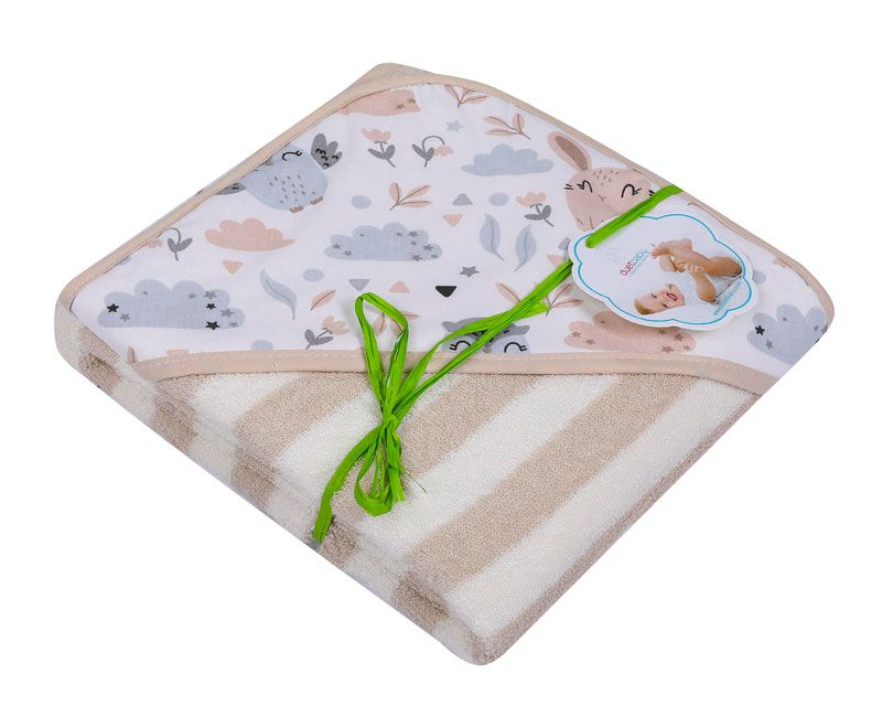 Minkštas ir patogus vaikiškas rankšluostis su gobtuvu.
