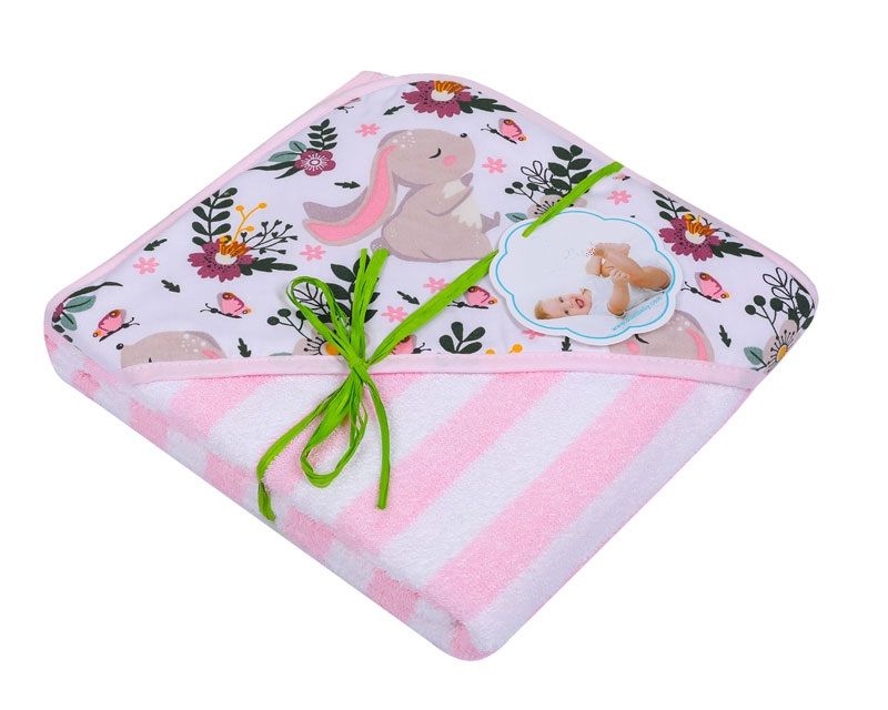 Pehme ja mugav kapuutsiga vannilina beebidele. Valmistatud 100% puuvill.