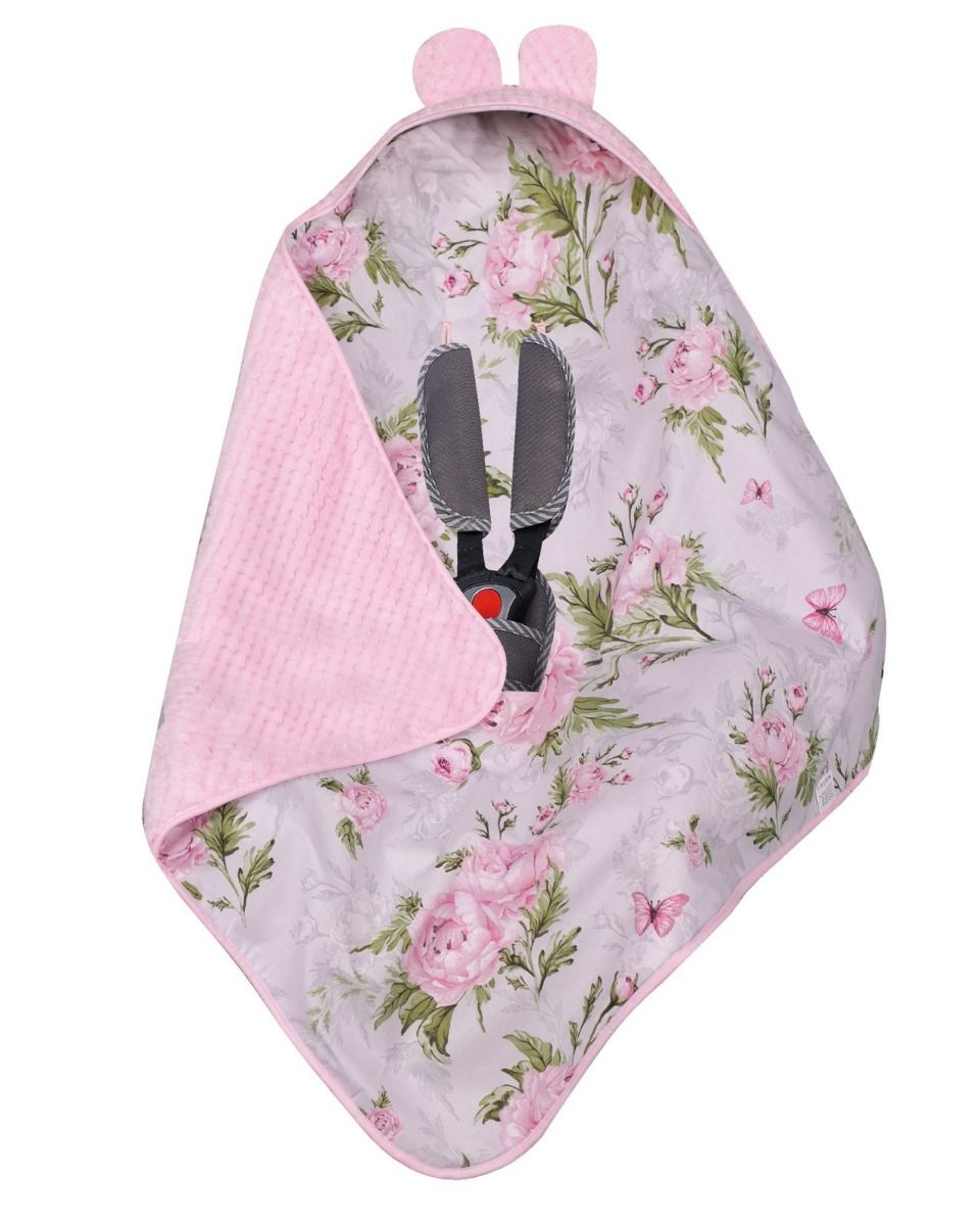 Turvahälli tekk ja soojakott "Peonies" 80x80 cm roosa
