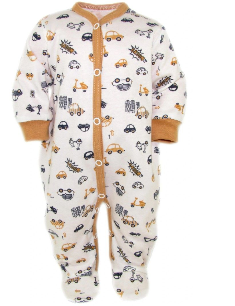 Pika varrukaga eest lahti käiv trukkidega beebi kombinesoon Õlal ja jalgevahel on trukid, mis tevad mähkmete vahetamise eriti mugavaks. Koostis: 100% puuvill