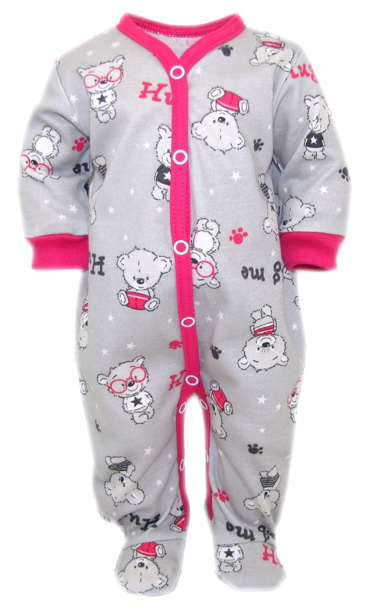 Pika varrukaga eest lahti käiv trukkidega beebi kombinesoon Õlal ja jalgevahel on trukid, mis tevad mähkmete vahetamise eriti mugavaks. Koostis: 100% puuvill