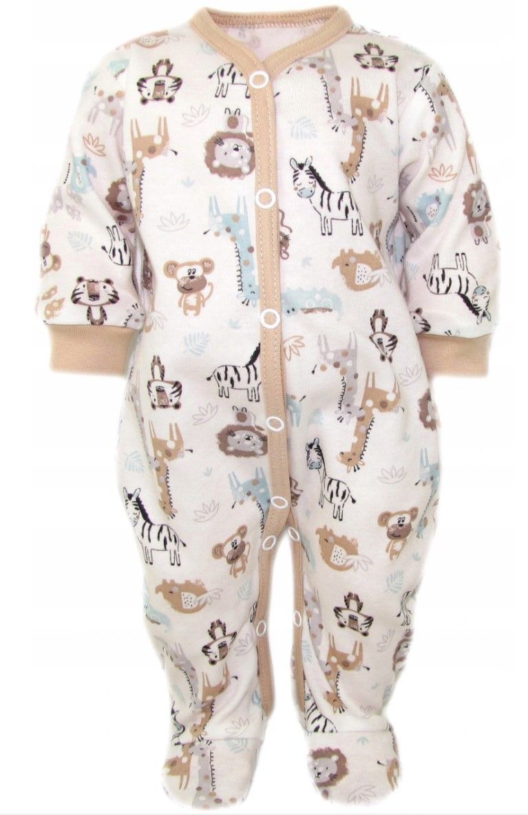 Pika varrukaga eest lahti käiv trukkidega beebi kombinesoon Õlal ja jalgevahel on trukid, mis tevad mähkmete vahetamise eriti mugavaks. Koostis: 100% puuvill