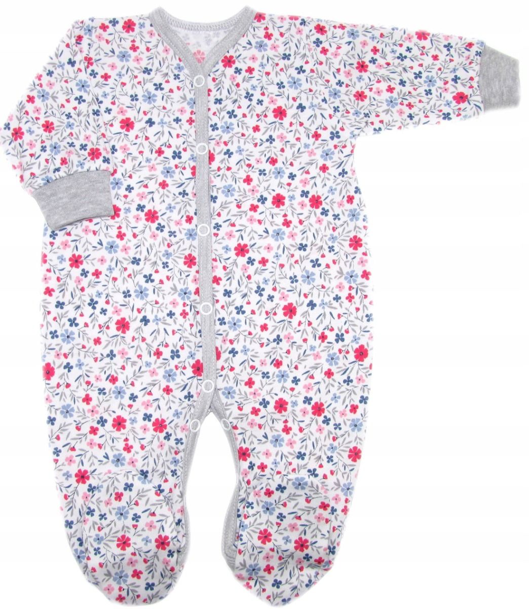 Pika varrukaga eest lahti käiv trukkidega beebi kombinesoon Õlal ja jalgevahel on trukid, mis tevad mähkmete vahetamise eriti mugavaks. Koostis: 100% puuvill