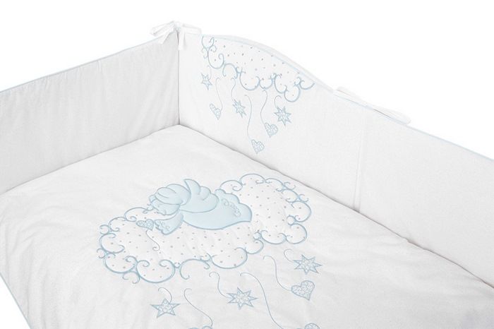 Kirjeldus Beebi voodipesu ja voodipehmendus "Angels" sinine