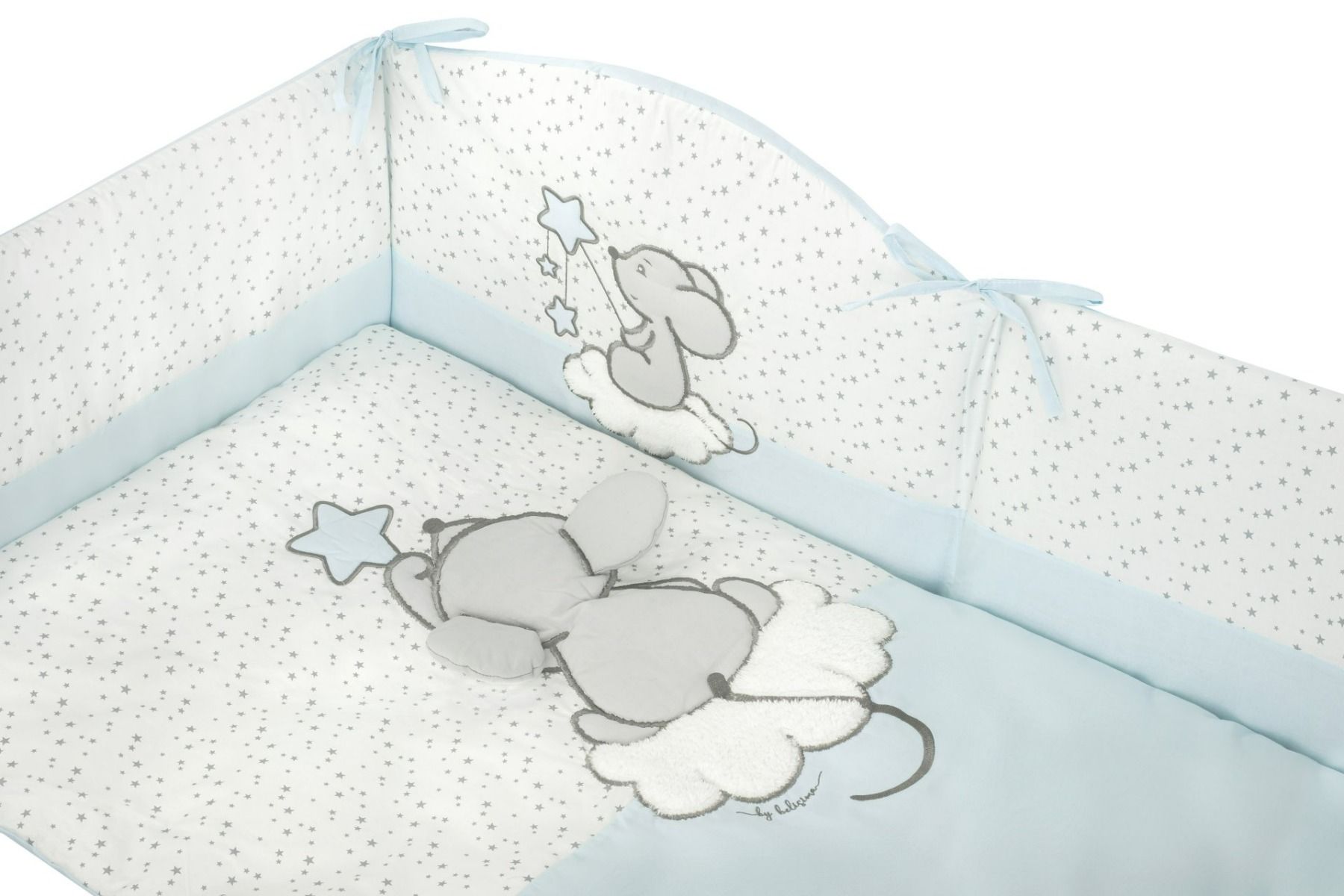 Kirjeldus Beebi voodipesu ja voodipehmendus "Blue stars"