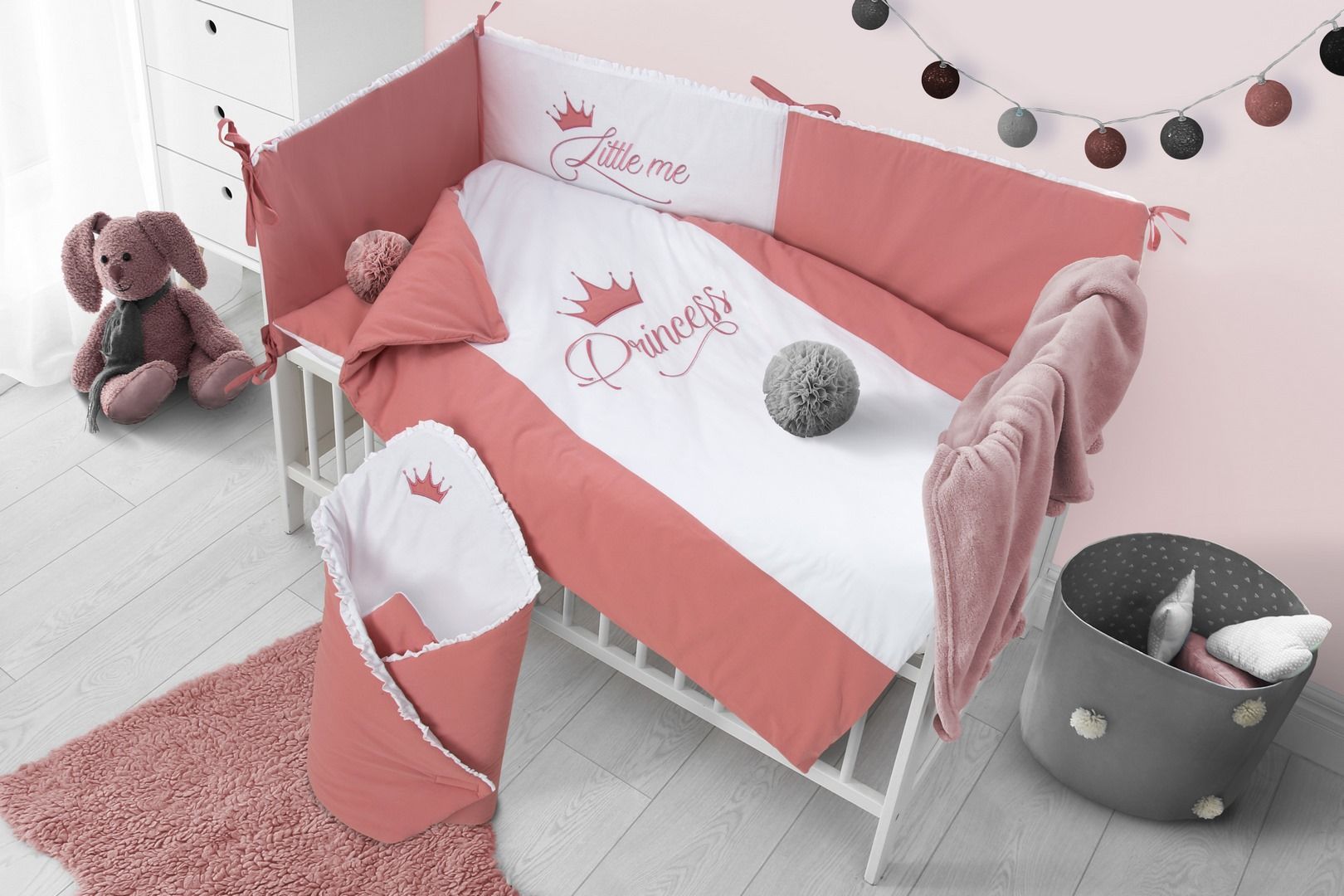 Kirjeldus Beebi voodipesu ja voodipehmendus "Royal baby" roosa