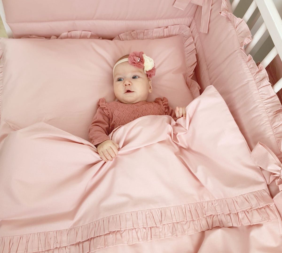 Beebi voodipesu ja voodipehmendus, voodilina "Royal powder pink" Laost otsas