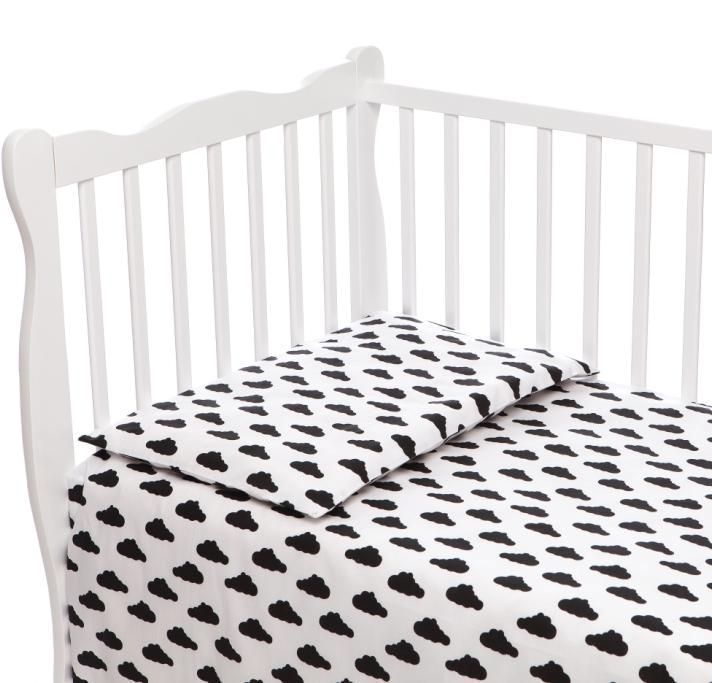 Kirjeldus Beebi voodipesukomplektid 100x135 "Clouds" valge (mustade pilvedega)