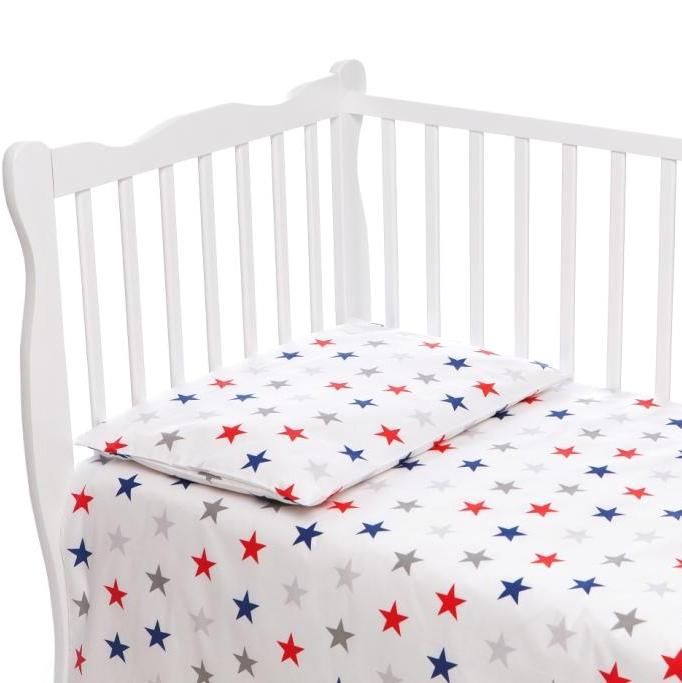 Kirjeldus Beebi voodipesukomplektid 100x135 "Galaxy" punaste tähtedega