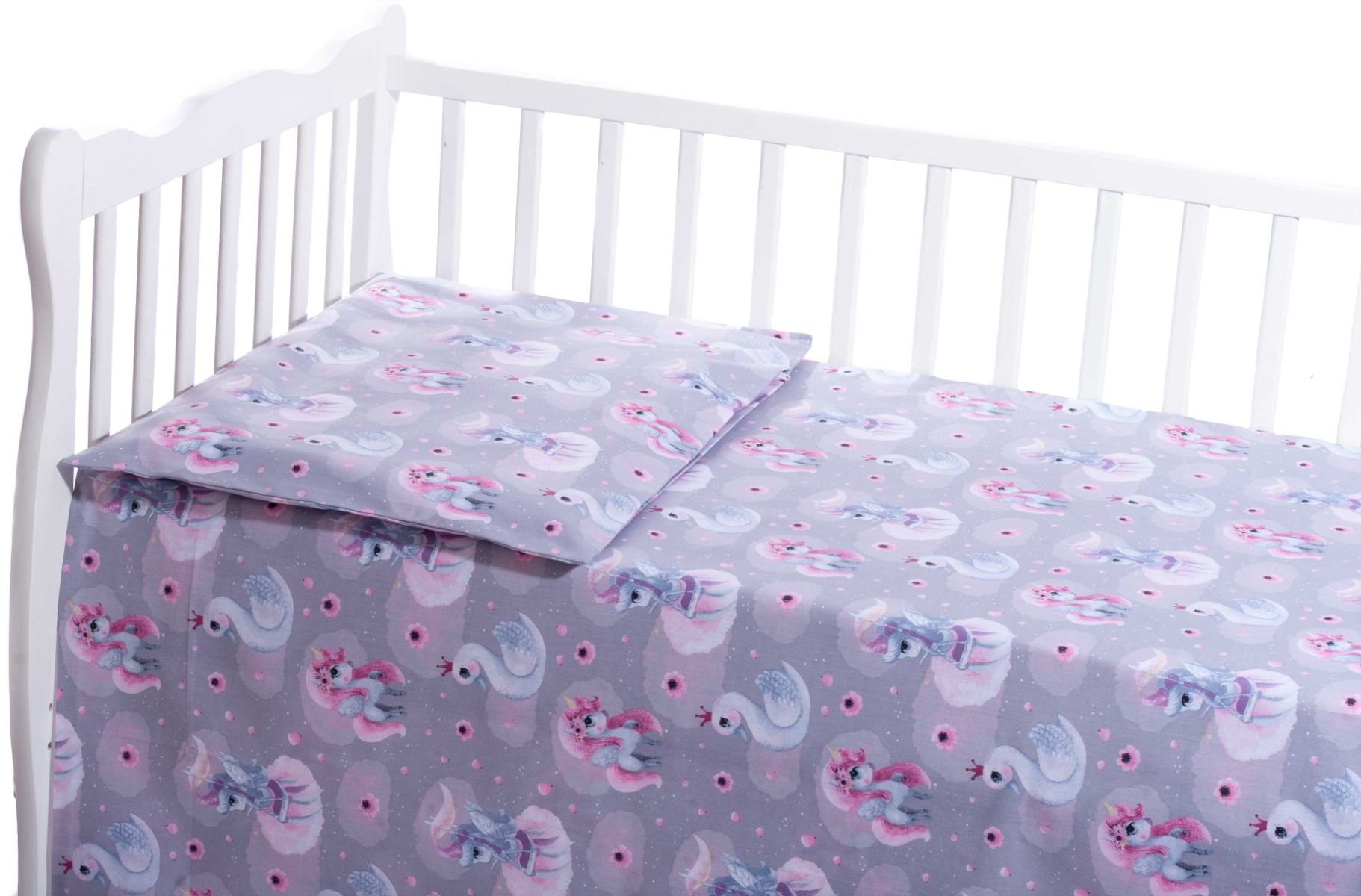 Kirjeldus Beebi voodipesukomplektid 100x135 "Lovely" halli värvi ükssarvikutega