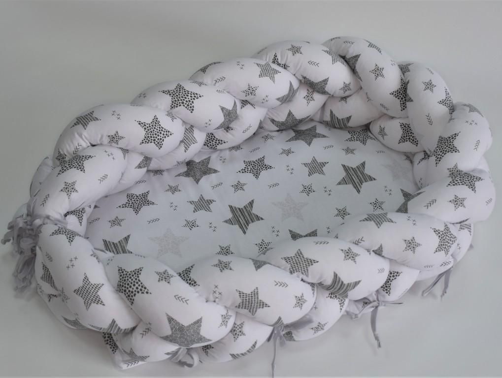 2in1 Beebipesa - Voodipehmendus beebile 180 cm "Galaxy white" valge