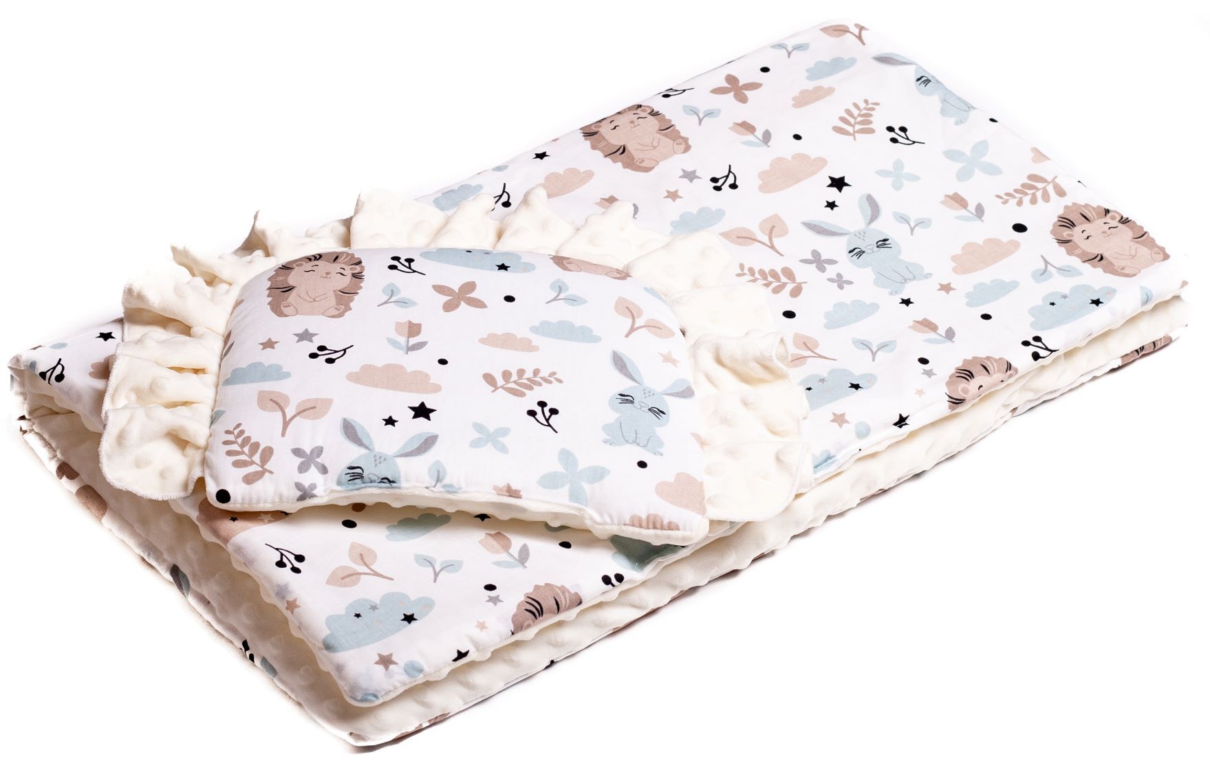 Pehme, soe, õhuliselt kerge laste pleed. Seda saab kasutada voodikattena või lihtsalt mõnusa ja pehme padja/tekina. Pleedi üks külg on valmistatud puuvillast, teine aga mõnusalt pehmest plüüs kangast. Kuigi pleed hoiab hästi sooja, on see kerge kaaluga ning lihtsasti kokkuvolditav.