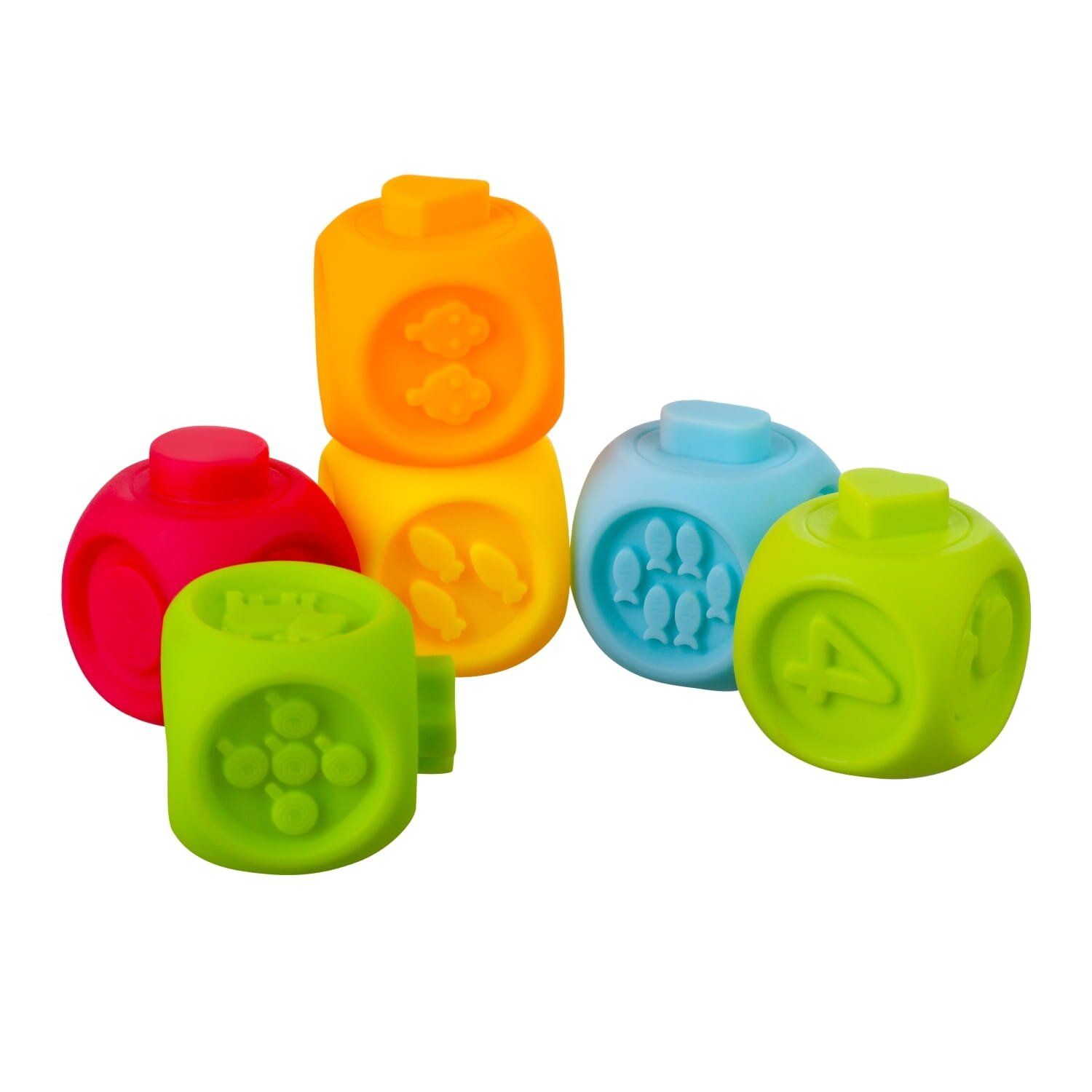 Rinkinyje yra 6 skirtingų spalvų minkštos kaladėlės, kurias galima jungti tarpusavyje.