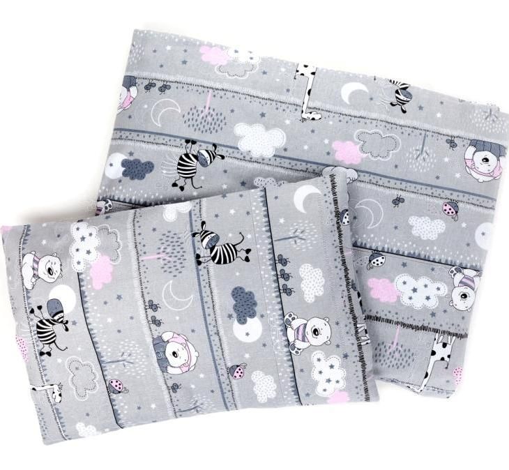 Hälli voodipesu 80x70cm "Safari" hall (roosa sebra ja karu)
