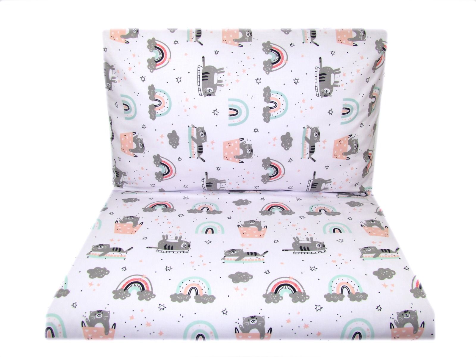 Kirjeldus Hälli voodipesu 80x70cm "Hall" kasside ja roosade detailidega.