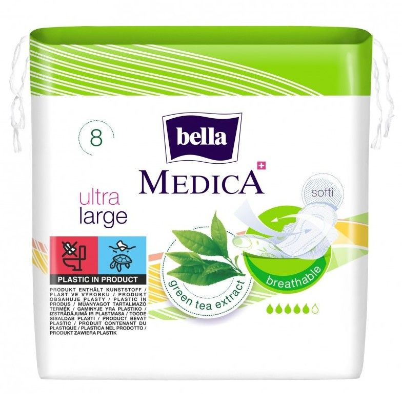Bella Medica Ultra Large hügieenisidemeid on rikastatud rohelise tee ekstraktiga, tänu millele on neil antibakteriaalsed ja põletikuvastased omadused. Need on hingavad, ei põhjusta ärritust ja neutraliseerivad intiimlõhna. Tänu oma piklikule kujule tagavad need pikemaks ajaks mugavuse ja kuivustunde.