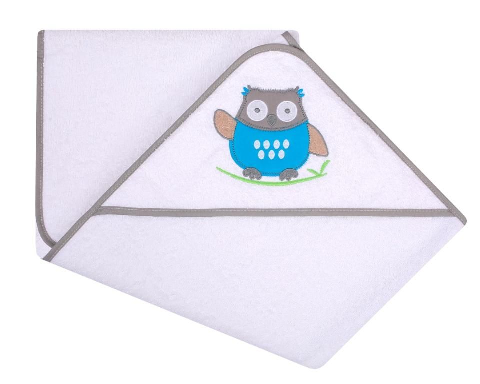 Kapuutsiga vannilina "Happy owl" 100x100cm "frotee" valge