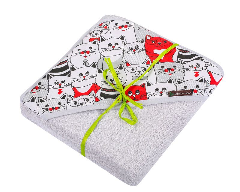 Kapuutsiga vannilina 100x100 cm "Baby bamboo" hall kiisuga
