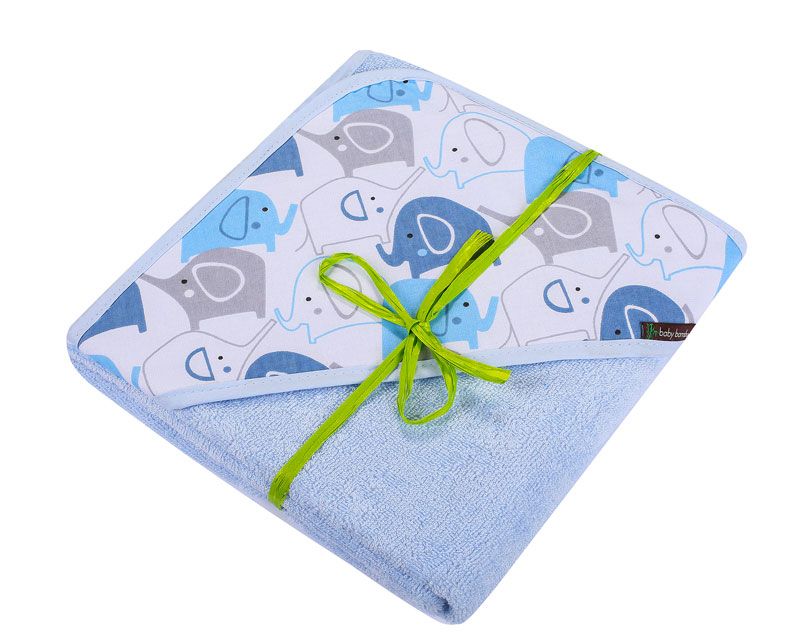 Kapuutsiga vannilina 100x100 cm "Baby bamboo" sinine elevandiga