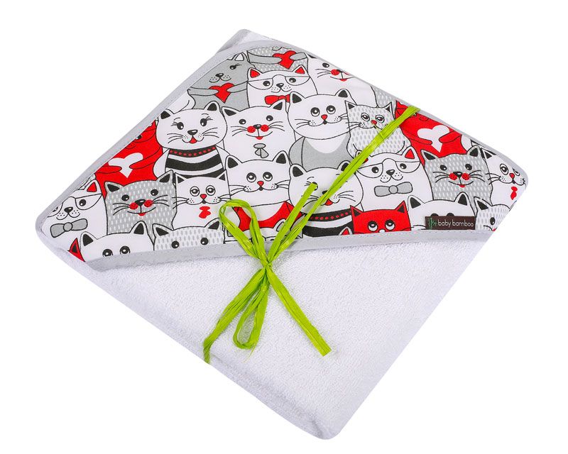 Kapuutsiga vannilina 100x100 cm "Baby bamboo" valge kassidega