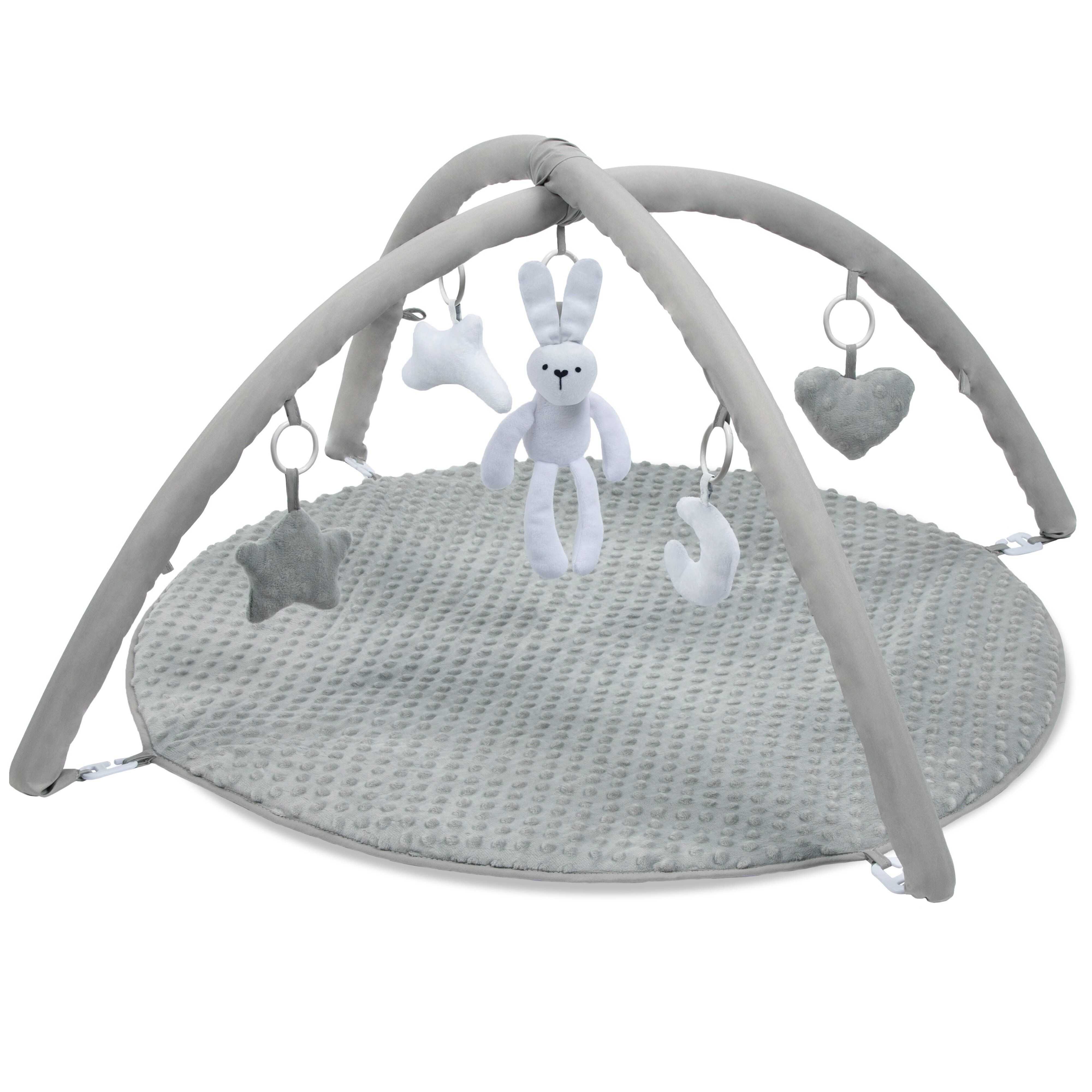 yra ideali žaidimų erdvė kūdikiams, kurie pradeda pažinti pasaulį. Kilimėlis gali lydėti jūsų vaiką nuo pirmųjų gyvenimo dienų. Minkšti, pliušiniai žaislai skatina vaiką stebėti, liesti ir klausytis. Žaisliukus galima pritaikyti pagal individualius vaiko poreikius ir pritvirtinti ant lankų net 9 skirtingose vietose.