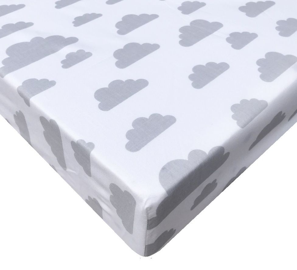 Kummiga voodilina "Clouds" 60x120 - puuvil, hallide pilvedega