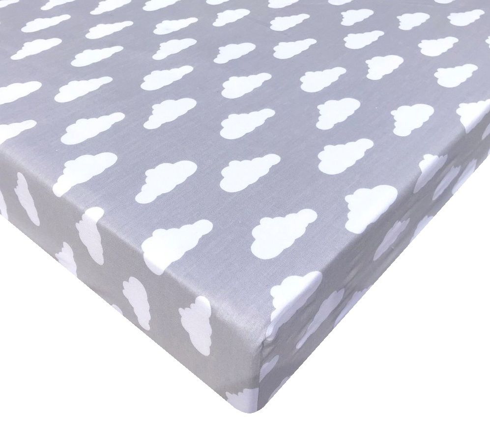 Kummiga voodilina "Clouds" 60x120 - puuvil, valgete pilvedega