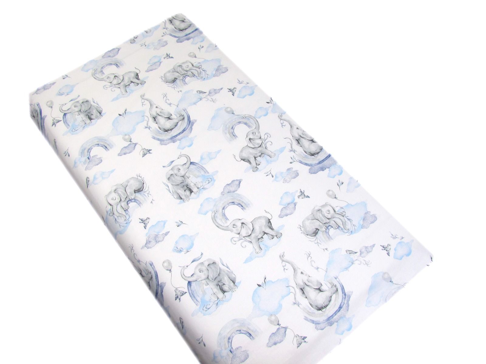 Kirjeldus Kummiga voodilina 120x60 "Elephants" - puuvil sinine