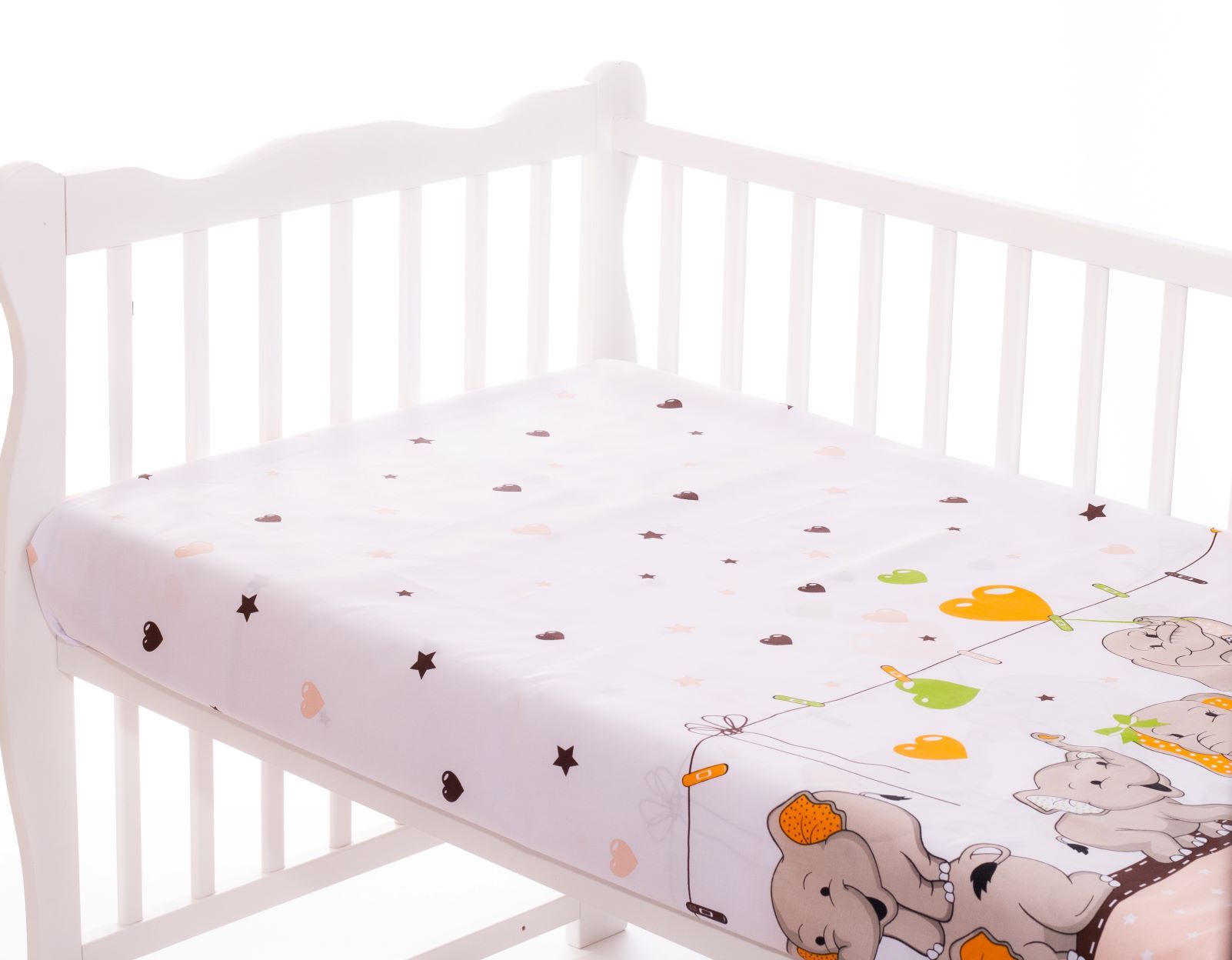 Kummiga voodilina "Happy elephants" 60x120 - puuvil