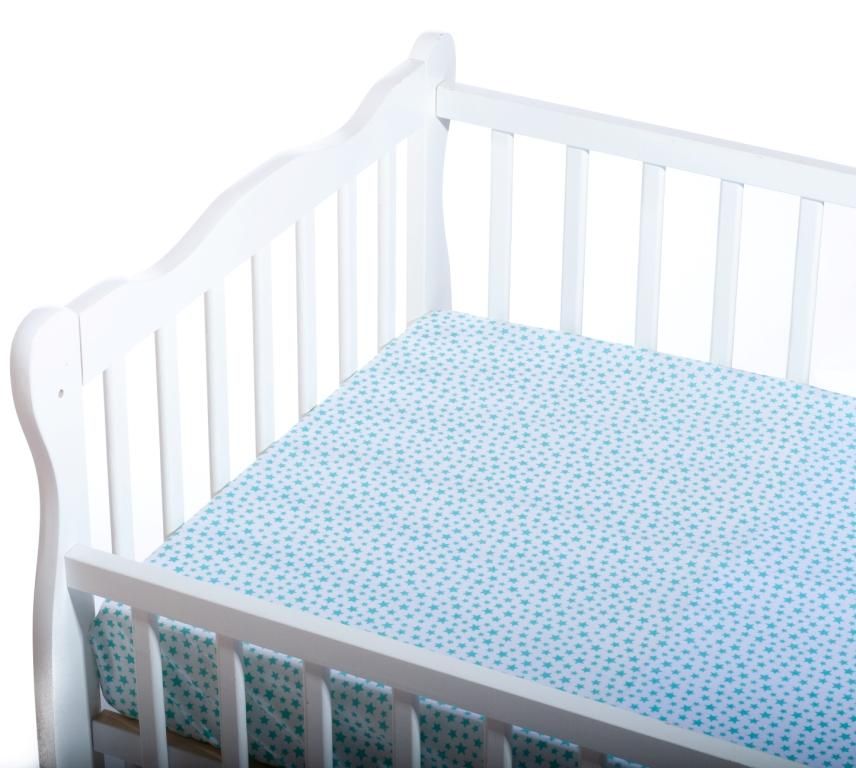 Kummiga voodilina "Stars" 60x120 - puuvil, türkiissinine