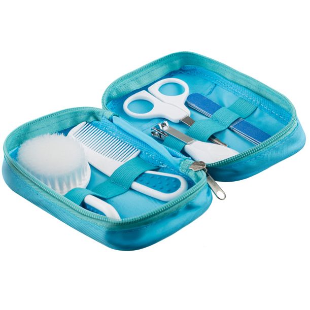 Sobib kasutamiseks alates esimestest elupäevadest. Komplektis on turvaliste otsadega käärid, küünelõikur, küüneviil, juuksehari ja kamm.
