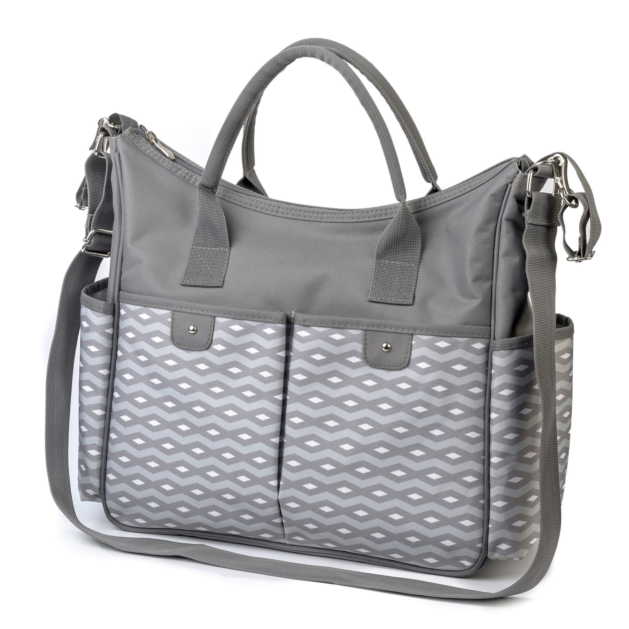Rankinė turi 11 kišenių, tarp ir jų ir skirtų buteliukams, sauskelnėms, telefonui ir dokumentams, pagrindinis rankinės skyrius užsegamas užtrauktuku.