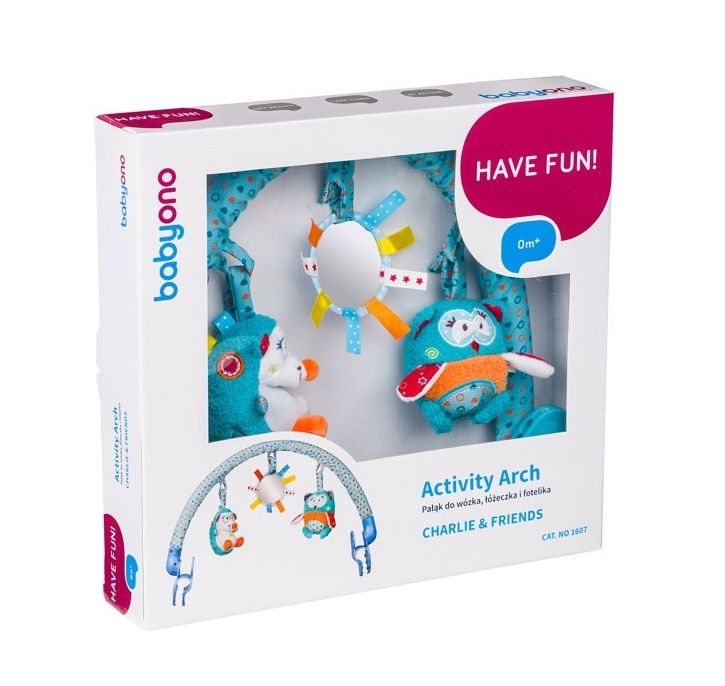 Kaare saab kinnitada beebitooli, magamisaseme või vankri kohale. Rippuvad mänguasjad arendavad beebi tähelepanu ja ta saab neid katsuda.