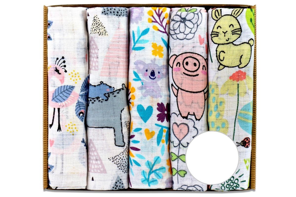Puuvillaste marli lapid komplekt, 5 tükki, "Funny"