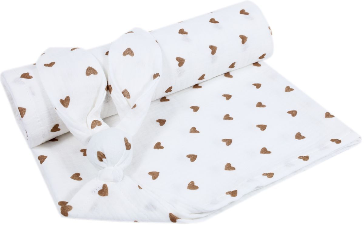Kirjeldus Musliintekk beebile koos kaisulapiga (70x100) – beežid südamed