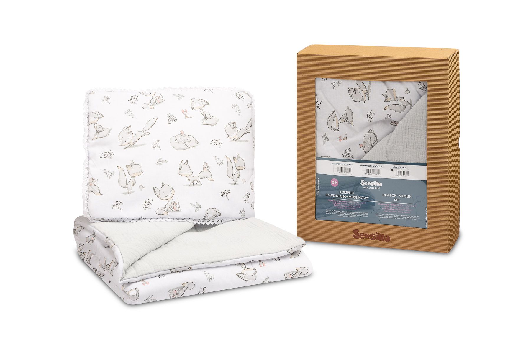 Kirjeldus Musliin ja puuvillane beebitekk "Foxy" hall