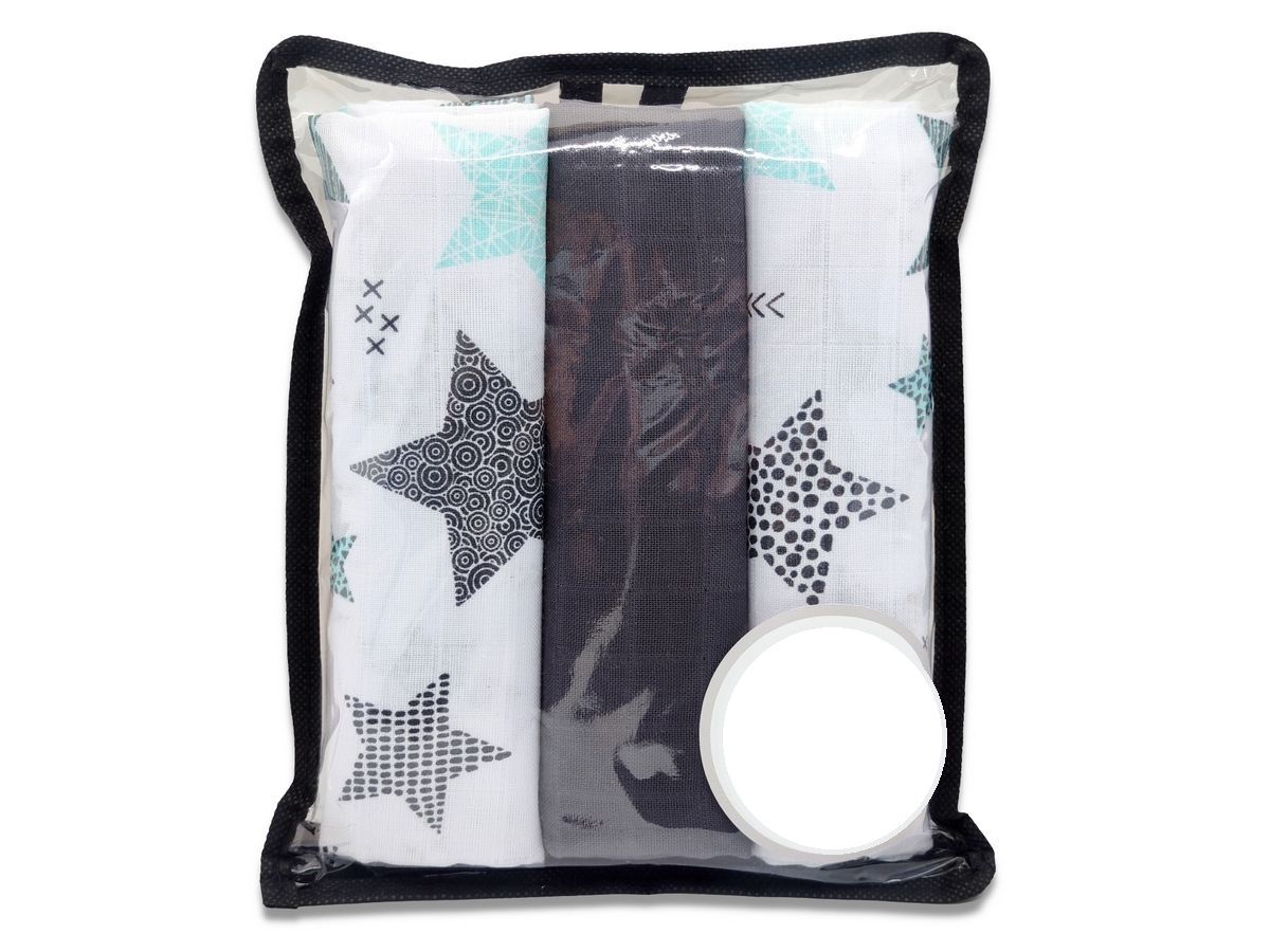 Komplekti kuuluvad: 3 x puuvillased marlilapid: mõõdud: 3 tk - 60x80 cm