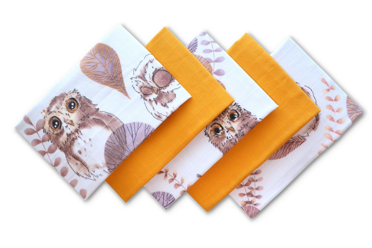 Premium naturaalsest puuvillast, 5-osalisest pehmest musliinist lapid komplekt. Igas komplektis on 3 mustrilist lapid ja 2 tavalist mähet.
