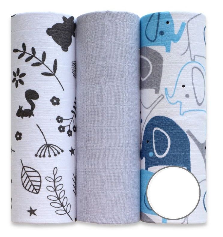 Komplekti kuuluvad: 3 x puuvillased marlilapid: mõõdud: 3 tk - 60x80 cm